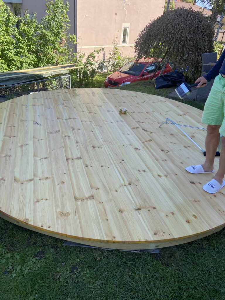 Ett runt trädäck i samma mått som kupolens botten är ett av våra mest efterfrågade alternativ. Det ger en tydlig inomhuskänsla och gör kupolen till ett naturligt extra rum, särskilt när den placeras nära huset eller används året runt. Trädäcket skapar en stabil, jämn yta och gör det enkelt att möblera och inreda kupolen.