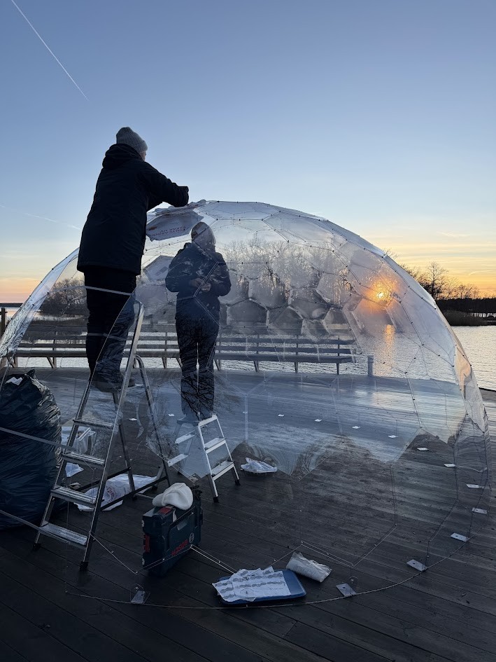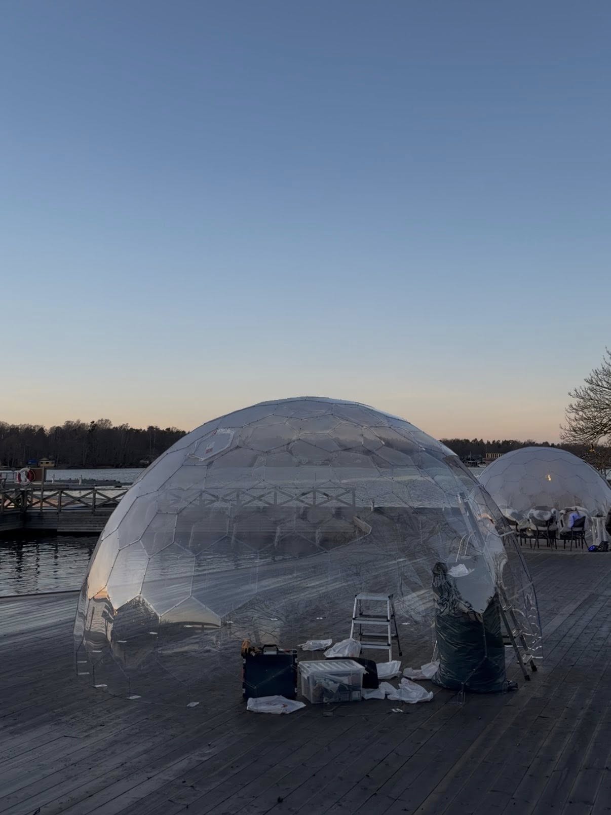 Gränsö Slott har nu två av våra kupoler på deras fantastiska brygga nedanför slottet. Vi har monterat både en Globy Dome (Medium) och en Large Dome, vilket skapar flexibla och naturnära utrymmen med fantastisk utsikt över vattnet. Kupolernas design smälter elegant in i miljön och erbjuder både rymd och generöst ljusinsläpp samtidigt som de fungerar som unika och inspirerande platser året runt.